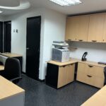 Espaciosa oficina con excelente distribución, divisiones de vidrio, pisos de linoleum alto tráfico y alfombra; muebles incluidos; 4 cámaras de seguridad controladas por un computador; líneas telefónicas, internet ABA y puntos de internet en todos los puestos de trabajo.